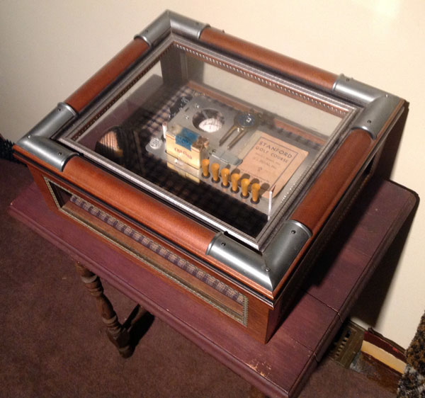 Components: Silent Caddy golf accessory holder (circa 1950's), Old Gold authentic cigarettes, Arnold Palmer facsimile signature golf balls, vintage carrot golf tees, vintage plaid pants, vintage score caddy counter, Champion spark Plug marker, St. Andrews divot tool with golf ball marker, flag from Table Golf game (UK), pencil, vintage Stanford golf Course golf scorecard, vintage golf club, resin.